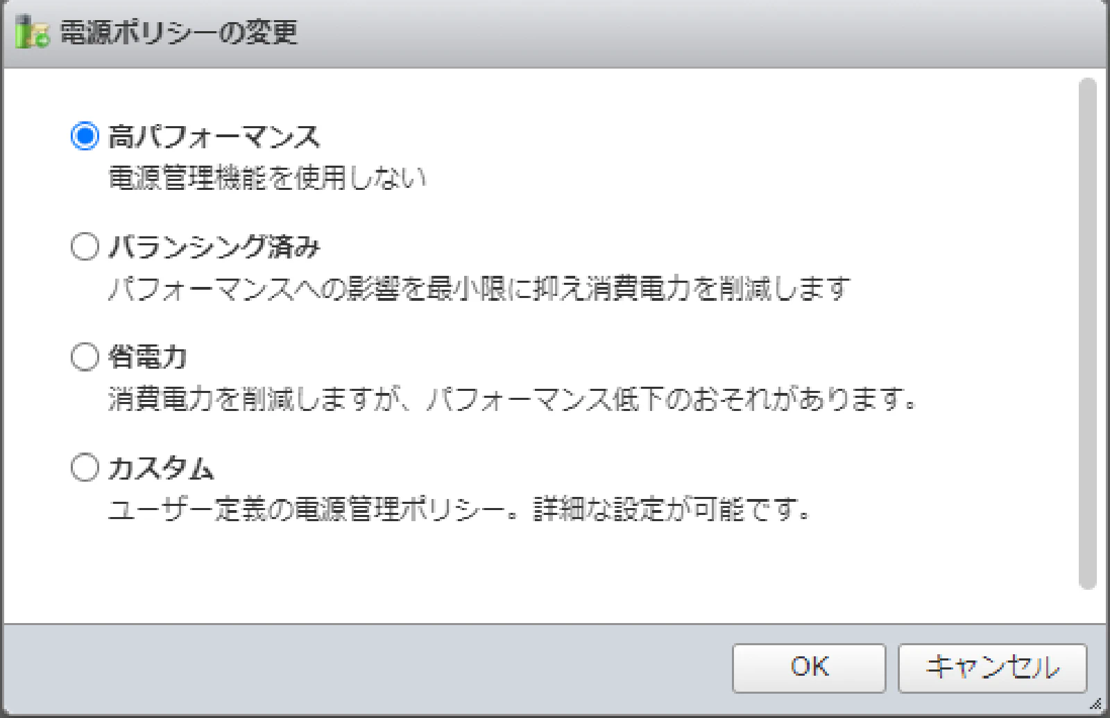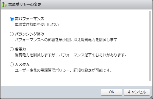 ナビゲーター→ホスト→管理→ハードウェア→電源管理にある「ポリシーの管理」をクリックします。