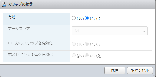 “有効"の項目で「いいえ」を選択することでスワップを無効化することができます。