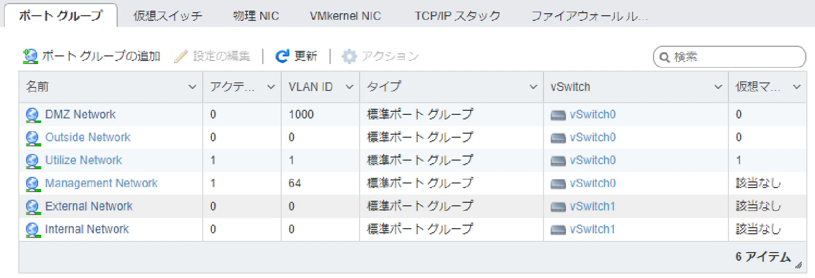 今回の構成では以下のポートグループを作成します。