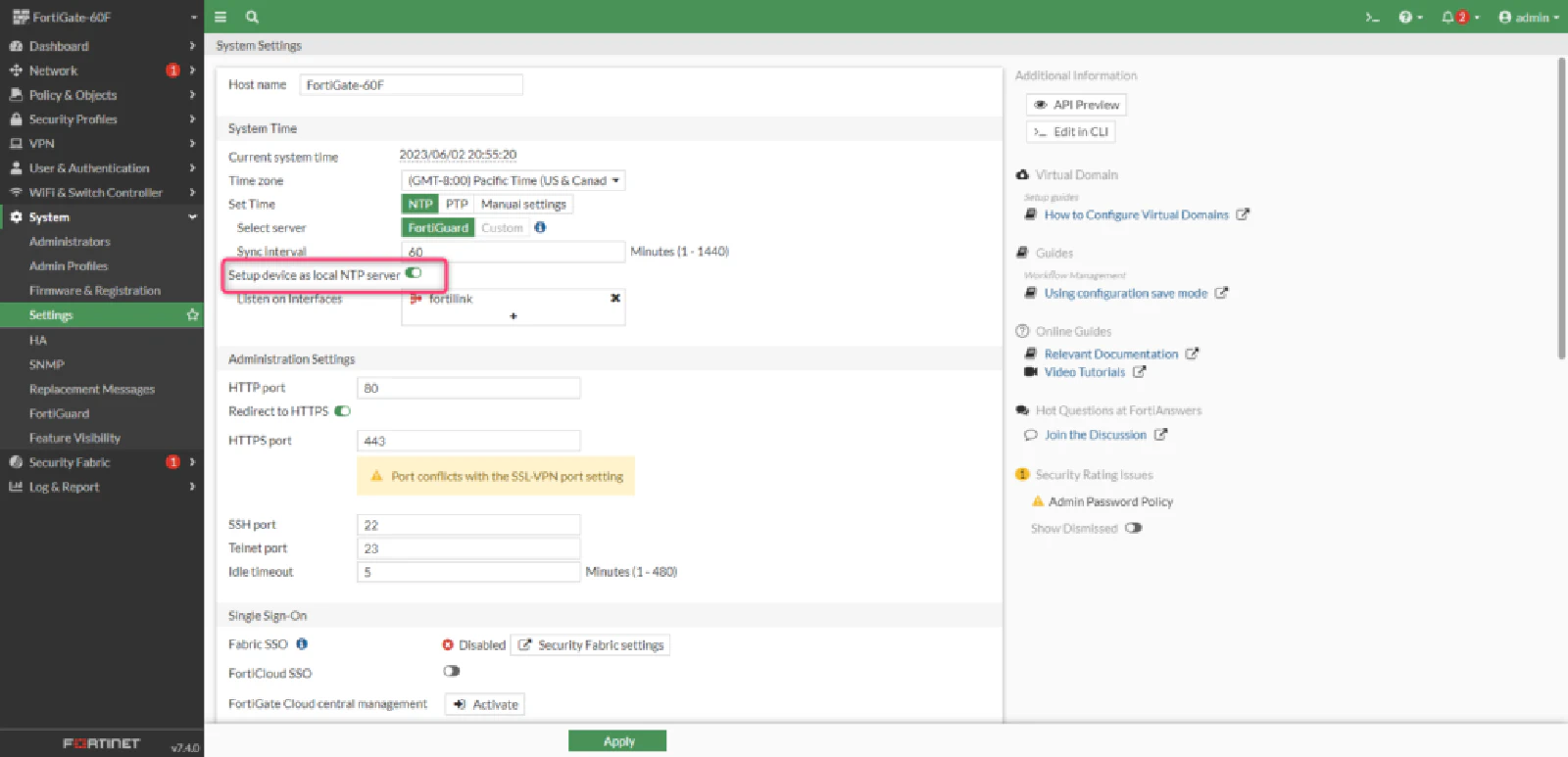 Setup device as local NTP Server のスイッチをオフにします。