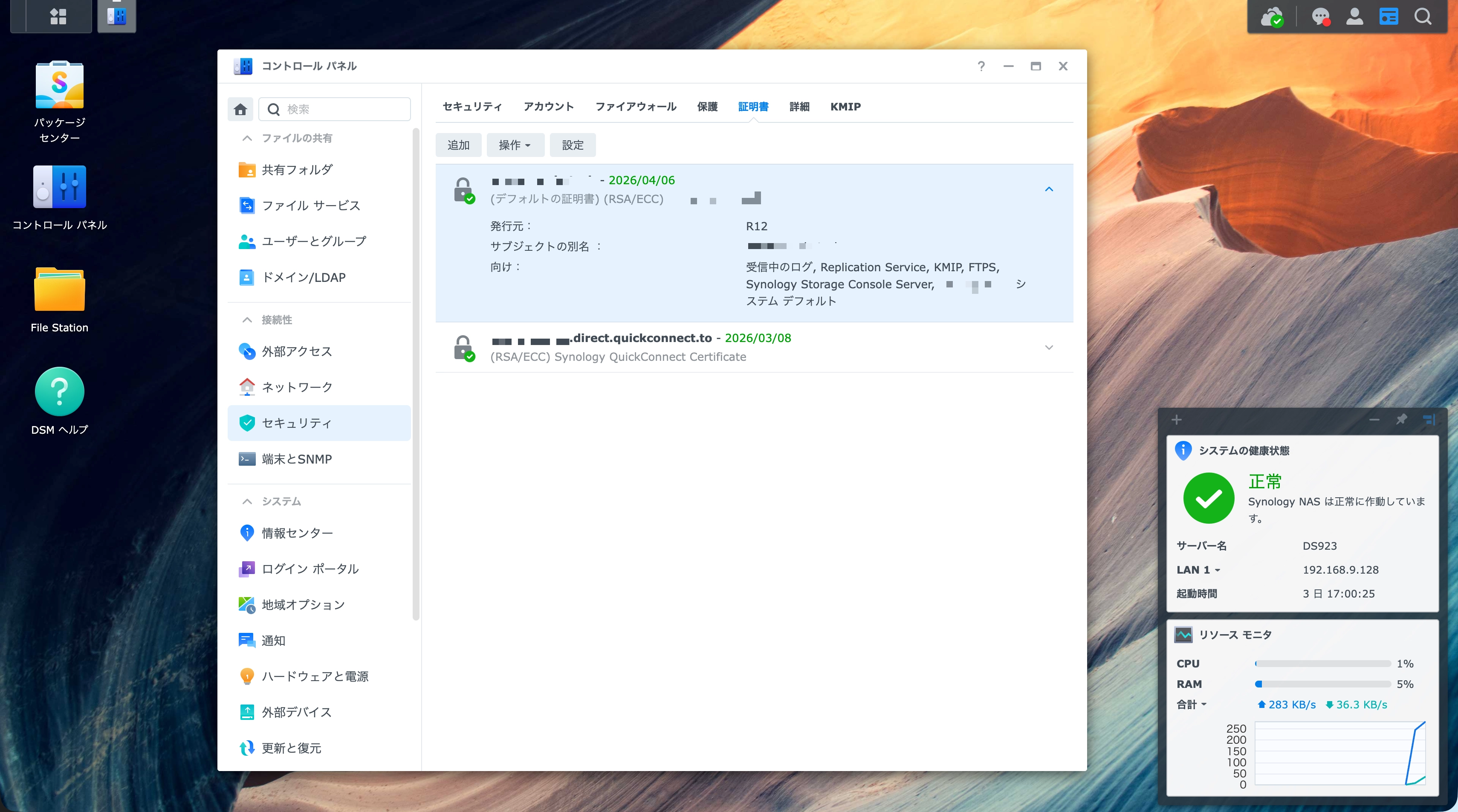 これで、DSM本体用とリバースプロキシ用の2つの証明書が取得できました。