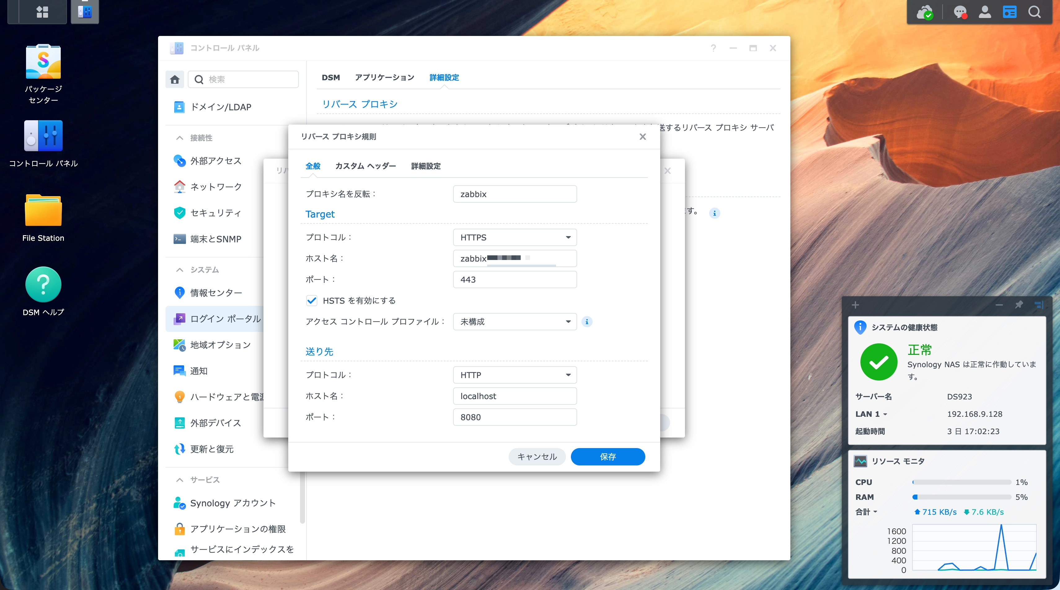 - リバースプロキシ: DSM内蔵機能でDockerコンテナへ振り分け