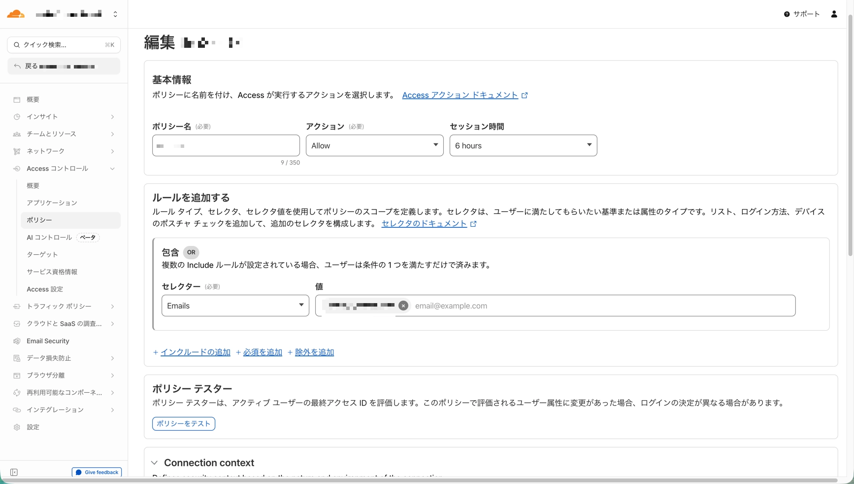- Policy名を入力(例: