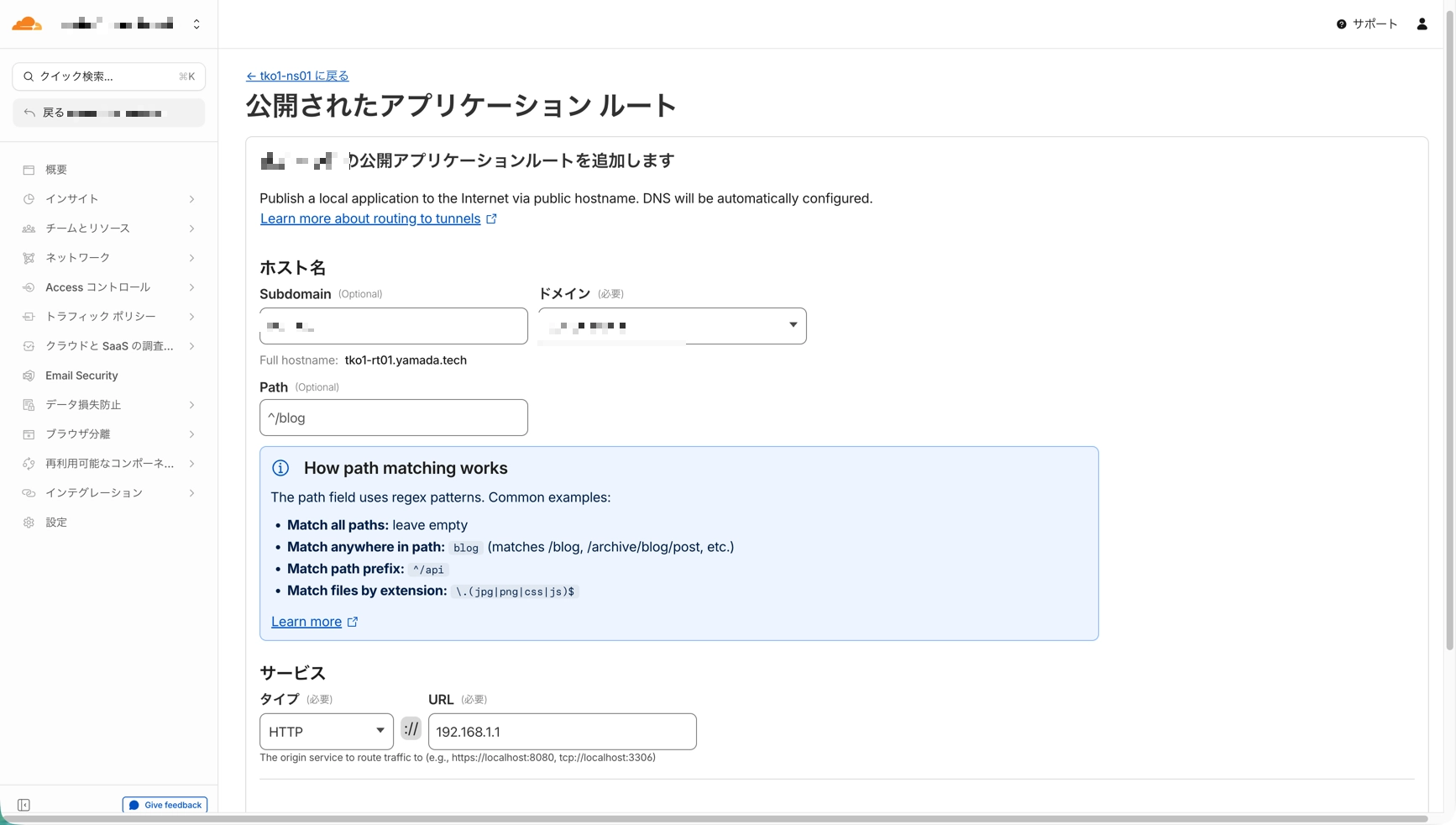 注意点として、Tunnelだけ設定してAccessを設定しないと、URLを知っていれば誰でもアクセスできてしまいます。 必ずセットで設定してください。