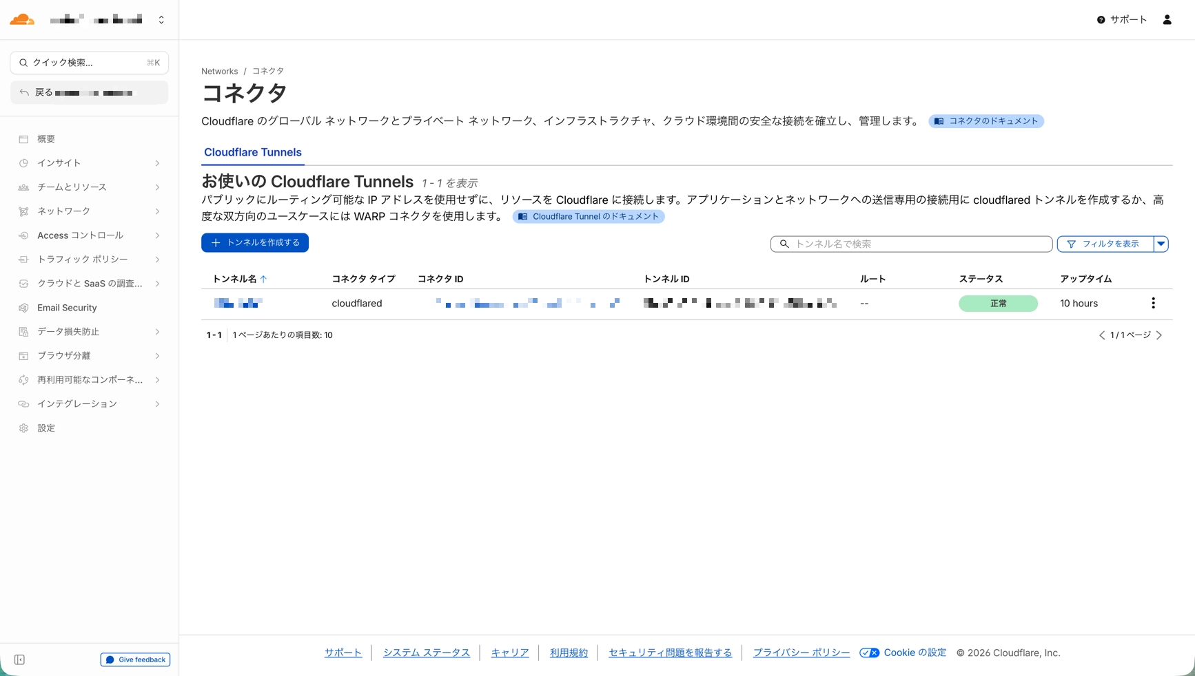 - 左メニューから「Networks」→「Connectors」→「Cloudflare Tunnels」を選択