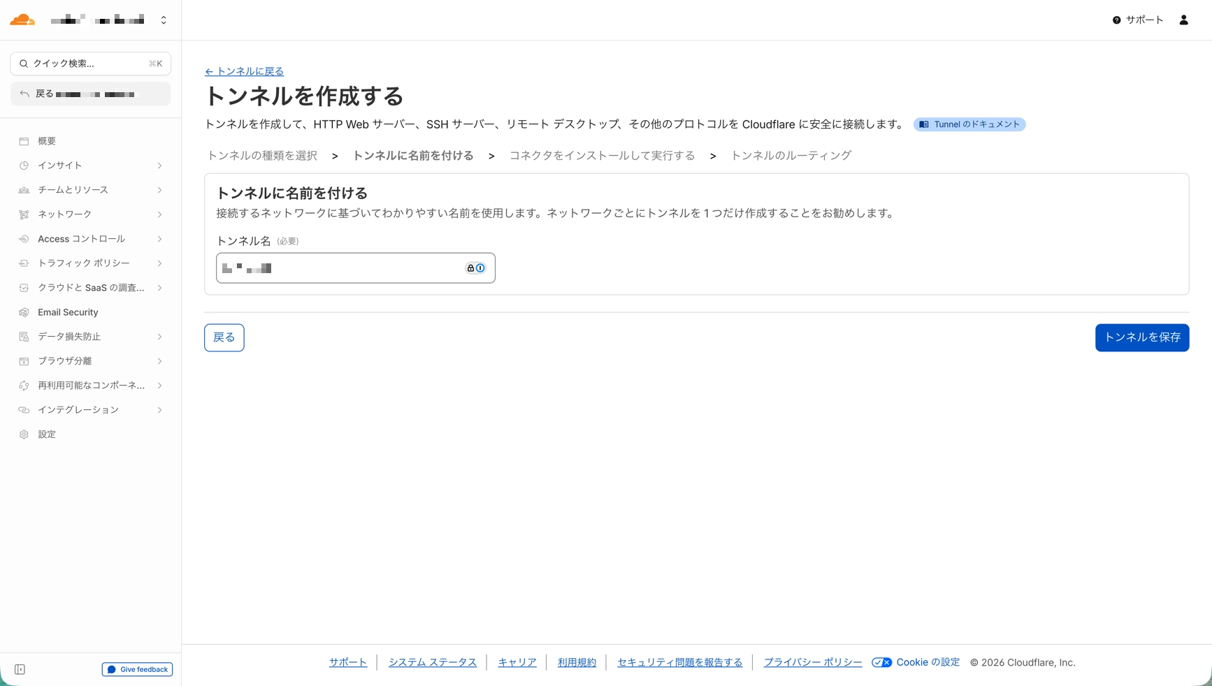 構築手順1: Cloudflare Zero TrustダッシュボードでのTunnel作成